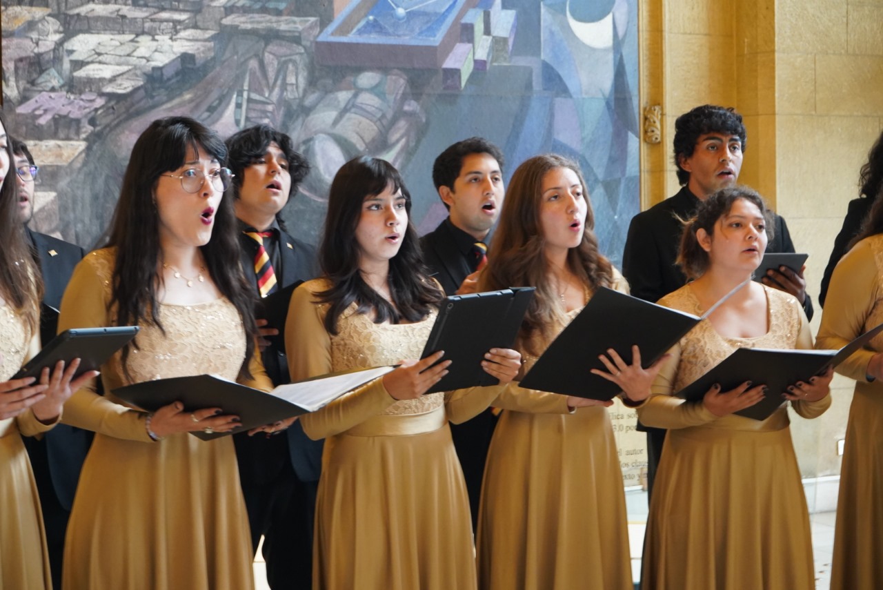 La velada culminó con un acto cultural a cargo del Coro de Cámara USM —dirigida por Felipe Molina— y la primera sesión de pósters, ofreciendo un espacio de esparcimiento, diálogo y oportunidades de colaboración entre los asistentes.