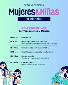 La feria contará con una programación diversa que incluye desde recorridos por el museo hasta el esperado segmento «Conversando con una científica», donde jóvenes de entre 10 y 17 años podrán interactuar con destacadas doctoras en Biotecnología, Neurociencias y Ciencia de Materiales.